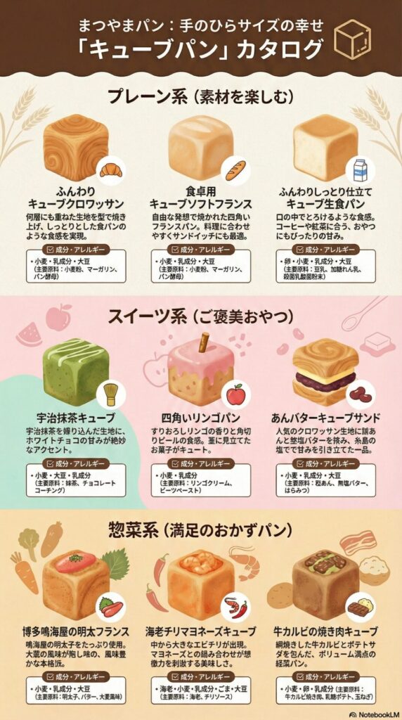 choice publication date:2026/02/13 福岡キューブパン専門店まつやまパンの取説 share tweet Send on line キューブパンのイラストは「AI」がイメージで作成しております share tweet Send on line Comments are closed. Previous Articleなぜキューブパンはバズるのか?断面映えとギフト人気の秘密Next Articleあなたのカフェ、パンがもったいない|キューブパンがメニューを“映え”で格上げする理由
